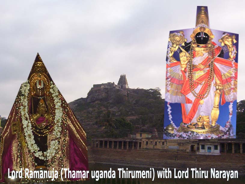 Once you think South Indian Temples, immediately you will remember Tamil Nadu , All these years I was also thinking the same , but you will be surprised that there are lot of temples and temples especially dedicated to Lord Maha Vishnu and his different avatars In Karnataka. I can say in Karnataka there are lot of temples dedicated to Lord Narasimha in different forms (Yoga, Bhoga, Ugra, Sthambha etc.) . We should be proud that present day Karnataka ( Karu Nadu ) ( Known as Mel Nadu in those days ) has played a very vital role in spreading Sri Vaishnavism ; It has played host to the two pillars of Sri Vaishnavism. Melkote played host to Lord Ramanuja and Sathyagalam (In local Parlance it is known as Sathyagala) played host to Swami Desikan. It is said that in the serene atmosphere of Karnataka, number of divine works of the two great Acharyas were composed.